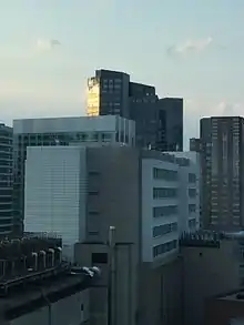 Founded on June 3, 1868 as Boston Dental College by Dr. Isaac J. Wetherbee, a graduate of the first organized dental university in the United States, Baltimore College of Dental Surgery.[7] The college was incorporated into Tufts College in 1899 and was located at 416 Huntington Avenue in Boston. By 1929, Tufts Medical and Dental College began an affiliation with the Boston Floating Hospital for Infants and Children, as well as the Boston Dispensary. This merger resulted in the creation of an association known as the New England Medical Center (NEMC), which would be the name of the hospital attached to the current day Tufts Dental School until the 1990s. The union was partially caused by the fire, and subsequent destruction of the USS Boston Floating Hospital (ID # 2366), a mobile hospital for sick children on Boston Harbor.[8] In 1948, Tufts Medical and Dental College sold the Huntington Avenue buildings to Northeastern University, and relocated closer to NEMC at 136 Harrison Avenue. In 1954, Tufts Dental College became the "Tufts University School of Dental Medicine". The school would remain at the Harrison Avenue location until 1971, when it was moved to its current location, 1 Kneeland Street. The building was only 10 floors in height, but was designed with future expansion in mind. In 2009, the building was expanded by 5 floors, vertically. This was seen by the architectural world as unprecedented; the design and execution has won several architectural awards.[9] In 2013, the University announced plans to refurbish the third and fourth clinical floors, to match the newly renovated second floor.