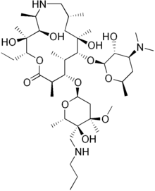 Tulathromycin, sold under the brand name Draxxin among others, is a macrolide antibiotic used to treat bovine respiratory disease (BRD) in cattle and swine respiratory disease in pigs.