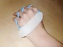Ulnar deviation, also known as ulnar drift, is a hand deformity in which the swelling of the metacarpophalangeal joints (the big knuckles at the base of the fingers) causes the fingers to become displaced, tending towards the little finger. Its name comes from the displacement toward the ulna (as opposed to radial deviation, in which fingers are displaced toward the radius). Ulnar deviation is likely to be a characteristic of rheumatoid arthritis, more than of osteoarthritis. Consideration should also be given to pigmented villonodular synovitis, in the setting of ulnar deviation and metacarpophalangeal synovitis.