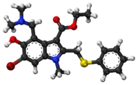 Umifenovir is used primarily as an antiviral treatment for influenza. The drug has also been investigated as a candidate drug for treatment of hepatitis C.[16]