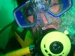 - Diving mask – Watertight air-filled face cover with view-ports for improving underwater vision
