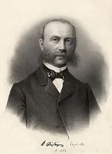 For a period of two years from 1840 Wilhelm Griesinger (1817–1868) worked as a medical assistant to Zeller at the Winnental Asylum.[5] While there, he adopted and adapted his senior colleague's model of a unitary psychosis.[5] He did not, however, shares Zeller's conviction regarding the nature of the human soul or character and its role in madness.[12] A convinced somaticist and commonly considered one of the founders of materialist psychiatry,[16] in the 1845 text which established him as one of the leading scientific psychiatrists of his era, Pathologie and Therapie der psychischen Krankheiten, he conceived of character, or "psychological tonus", as derived from the action of a postulated "psychic reflex action" (psychische Reflexaktion) produced by the stimulus of the accumulated representations (Vorstellungen) of the individual's life experience.[17] The concept of psychic reflex action was drawn by analogy from the physiological reflex action of the nervous system in response to a stimulus and he argued that both forms of reflex had the same mode of action and obeyed the same physical laws.[9] Mental illnesses occurred, he posited, when the system of psychic reflex action failed to function correctly and were either diminished, leading to melancholia, or accelerated, leading to mania.[9] His belief was that mental illness was a disease of the brain but that this in turn was caused by psychological factors.[18] His emphasis on the brain as the central site of mental illness has led to his association with the so-called Somatiker (somaticists) who had argued that the causes of mental illness were entirely physical whereas their opponents, the Psychiker, insisted that mental disorders were the result of psychological perversions, moral failings, or diseases of the soul (Seelenkrankheit).[17] As with Zeller, he postulated that melancholia constituted the primary form of mental illness which then passed to mania before terminating in dementia.[19] In his 1861 text Mental Pathology and Therapeutics Griesinger proposed a classificatory division of types of mental anomalies between those characterised by emotional disturbances and those characterised by disturbances in the intellectual and volitional functions.[20] He argued, based on his observation of cases, that the former condition preceded the latter where disorders of the intellect and will appeared "only as consequences and terminations" of disturbances of the emotions if "the cerebral affliction has not been cured".[21] These two categories thus constituted, for Griesigner, "the different forms [and] the different stages of one morbid process".[22] The general trajectory of this mental pathology tended towards "a constant progressive course, which may even proceed to complete destruction of the mental life".[23] Greisinger maintained his belief in unitary psychosis until the 1860s.[12]