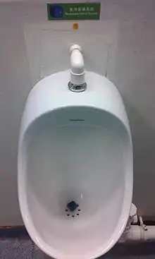 Urinal deodorizer blocks (also called urinal cakes, para blocks, urinal mints, urinal pucks, urinal peons (pee-ons), urinal biscuits, urinal cookies, hockey pucks, toilet pucks, toilet lollies, trough lollies, piscuits, or urinal donuts) are small disinfectant blocks that are added to urinals. The purpose of these blocks is to disinfect,[1] reduce odors, or mask odors of restroom urinals. They are placed above the urinal drain, often in the confines of a small plastic trap (urinal screen) that prevents their loss down the drain when they dissolve to a small size.