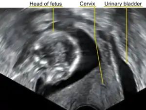 In a pregnant woman who is entering her second trimester, the combination of urinary difficulties and pelvic pain may alert the physician to consider uterine incarceration as a possibility. On physical examination, the cervix is pushed up and anterior, and the pelvis entirely filled by the soft mass of the body of the pregnant uterus. Sonography may indicate the retroverted position of the uterus, check on the viability of the fetus, and demonstrate the location of the bladder being pushed cranially and unable to be emptied.[4] Also magnetic resonance imaging has been found to be helpful in the diagnosis of the condition.[4][5]