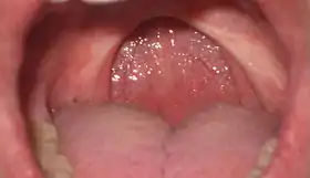 ![]() View of the throat 8 years following uvulopalatopharyngoplasty | |