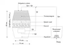 Common filter packing materials include sawdust,[12][13] wood chips, coir, bark, peat, and straw for the organic layer. Gravel, quartz sand, round stones, pumice, mud balls, glass balls, ceramsite and charcoal are commonly used for the inorganic layer. The surface area and porosity of these filter materials influence treatment performance.[14] Thus, materials with low granulometry (small particles) and large surface area may improve the performance of the vermifilter.