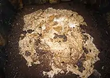 Worms actively digest the solid organic material. Over time, an equilibrium is reached in which the volume digested by a stable population of worms is equal to the input volume of solid waste. Seasonal and environmental factors (such as temperature) and variable influent volumes can cause buildup of solid waste as a pile. Although oxygen is excluded from the centre of this "wet" compost pile, worms work from the outside in and introduce air as necessary into the pile to meet their nutritional requirements. This food resource buffer ensures primary treatment vermifilters have a level of resilience and reliability, provided space is provided for a pile to build up. There is some evidence that the wet environment facilitates digestion of solid waste by worms.[9] The volume of vermicast humus increases only slowly and occasionally needs to be removed from the primary treatment reactor.