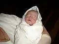 Newborn baby immediately after birth, covered in vernix