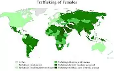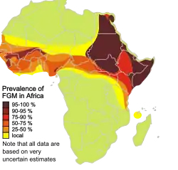 According to the UN, "there is no region of the world, no country and no culture in which women's freedom from violence has been secured."[30] Several forms of violence are more prevalent in certain parts of the world, often in developing countries. For example, dowry violence and bride burning is associated with India, Bangladesh, Sri Lanka, and Nepal. Acid throwing is also associated with these countries, as well as in Southeast Asia, including Cambodia. Honor killing is associated with the Middle East and South Asia. Female genital mutilation is found mostly in Africa, and to a lesser extent in the Middle East and some other parts of Asia. Marriage by abduction is found in Ethiopia, Central Asia and the Caucasus. Abuse related to payment of bride price (such as violence, trafficking and forced marriage) is linked to parts of Sub-Saharan Africa and Oceania. (Also see lobolo.)[36][37]