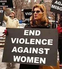 The UN Declaration on the Elimination of Violence Against Women states, "violence against women is a manifestation of historically unequal power relations between men and women" and "violence against women is one of the crucial social mechanisms by which women are forced into a subordinate position compared with men."[4]