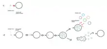 It is believe that oncolytic virus achieve their goals by two mechanism: selective killing of tumor cells as well as recruitment of host immune system.[7][8] One of the major challenges in cancer treatment is finding treatments that target tumor cells while ignoring non-cancerous host cells. Viruses are chosen because they can target specific receptors expressed by cancer cells that allow for virus entry. One example of this is the targeting of CD46 on multiple myeloma cells by measles virus. [9] The expression of these receptors are often increased in tumor cells.[8] Viruses can also be engineered to target specific receptors on tumor cells as well.[8] Once viruses have entered the tumor cell, the rapid growth and division of tumor cells as well as decreased ability of tumor cells to fight off viruses make them advantageous for viral replication compared to non-tumorous cells.[7][8] The replication of viruses in tumor cells causes tumor cells to lyse killing them and also release signal to activate the host’s own immune system, overcoming immunosuppression. This is done through the disruption of the microenvironment of the tumor cells that prevents recognition by host immune cells.[8] Tumor antigens and danger-associated molecular patterns are also released during the lysis process which helps recruit host immune cells.[8] Currently, there are many viruses being used and tested, all differing in their ability to lyse cells, activate the immune system, and transfer genes.