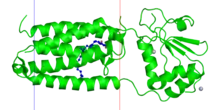 ![]() Structure of a bacterial VKOR, membrane denoted as lines (PDB: 3KP9). | |||||||||