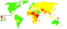 Since 1990, the Joint Monitoring Programme (JMP) for Water Supply, Sanitation and Hygiene by WHO and UNICEF has regularly produced estimates of global WASH progress.[7][10] The JMP was responsible for monitoring the UN's Millennium Development Goal (MDG) Target 7.C, which aimed to "halve, by 2015, the proportion of the population without sustainable access to safe drinking water and basic sanitation".[11] This has been replaced by the 2030 Sustainable Development Goals (SDG), where Goal 6 aims to "ensure availability and sustainable management of water and sanitation for all".[2]
