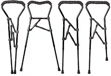 A walker cane hybrid[6] was introduced in 2012 designed to bridge the gap between an assistive cane and a walker. The hybrid has two legs which provide lateral (side-to-side) support which a cane does not. It can be used with two hands in front of the user, similar to a walker, and provides an increased level of support compared with a cane. It can be adjusted for use with either one or two hands, at the front and at the side, as well as a stair climbing assistant. The hybrid is not designed to replace a walker which normally has four legs and provides four-way support using both hands.