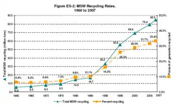 In 1980 only about 10% on municipal solid waste was recycled, and the product consisted largely of paper and glass recycled material. With the widespread use of autoclaves, that percentage climbed to a significant 45% by the year 2000, when composting and energy recovery became more common. With the evolution of the autoclave and the arrival of converters new uses of converted product are emerging on an ongoing basis. Some application only recently implemented are: Composting and combining with farm fertilizer, building material such as concrete additive, gasification fuel, and furnace/boiler pellet additive. The latter two are energy recovery options that only became acceptable on a large scale once the product was demonstrated to burn cleanly and within EPA emission regulations. A notable fact about energy recovery is that even though some waste was already reused in this way as early as 1980, the current generation of converters produces Biomass Fuel that burns exponentially cleaner than the incinerated waste of those times.