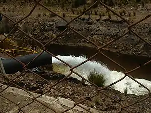 Industrial wastewater effluent with neutralized pH from tailing runoff in Peru.