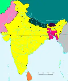 Water resources in India includes information on precipitation, surface and groundwater storage and hydropower potential. India experiences an average precipitation of 1,170 millimetres (46 in) per year, or about 4,000 cubic kilometres (960 cu mi) of rains annually or about 1,720 cubic metres (61,000 cu ft) of fresh water per person every year.[1] India accounts for 18% of the world population and about 4% of the world’s water resources. One of the solutions to solve the country’s water woes is to create Indian Rivers Inter-link.c[2] Some 80 percent of its area experiences rains of 750 millimetres (30 in) or more a year. However, this rain is not uniform in time or geography. Most of the rains occur during its monsoon seasons (June to September), with the north east and north receiving far more rains than India's west and south. Other than rains, the melting of snow over the Himalayas after winter season feeds the northern rivers to varying degrees. The southern rivers, however experience more flow variability over the year. For the Himalayan basin, this leads to flooding in some months and water scarcity in others. Despite extensive river system, safe clean drinking water as well as irrigation water supplies for sustainable agriculture are in shortage across India, in part because it has, as yet, harnessed a small fraction of its available and recoverable surface water resource. India harnessed 761 cubic kilometres (183 cu mi) (20 percent) of its water resources in 2010, part of which came from unsustainable use of groundwater.[3][4] Of the water it withdrew from its rivers and groundwater wells, India dedicated about 688 cubic kilometres (165 cu mi) to irrigation, 56 cubic kilometres (13 cu mi) to municipal and drinking water applications and 17 cubic kilometres (4.1 cu mi) to industry.[1]