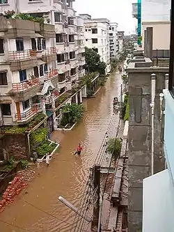 Among 11 cities participating in performance benchmarking in 2006–07, none provided water continuously to all customers. According to the benchmarking data, the city with the shortest supply per day was Bagerhat with 2 hours and the city with the longest supply was Dhaka with 23 hours, followed by Manikganj and Chandpur with 20 hours.[4] Within cities, the duration of supply often varies, as it does between seasons. Major water shortages in Bangladesh occur during the dry season.[18] As of 2011, however, intermittent supply was common in at least parts of Dhaka, forcing families to purchase drinking water and use pond or river water for their other needs. Regular power cuts, which turn off well pumps, also contribute to the intermittency of supply.[19]