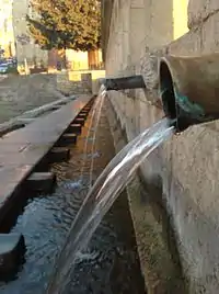 Many Italian cities receive their drinking water from groundwater and springs. For example, Rome receives 97% of its drinking water from springs and 3% from wells.[11] Milan receives its drinking water from 433 wells in the vicinity of the city.[12] However, other Italian cities get most of their drinking water from rivers. For example, Florence gets most of its drinking water from the Arno River, and the Naples region receives its drinking water through the Western Campania Aqueduct from the Gari River.[13]