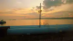 Singapore imports water from Johor state in Malaysia through a pipeline that runs along a 1 km bridge, the Johor–Singapore Causeway, that also carries a road and a railway. As of 2009, imported water had been reduced from 50% previously to 40% of total consumption.[23] After the expiry of a 1961 water agreement between Malaysia and Singapore in 2011, two agreements are in force now. One was signed in 1962 and another one in 1990. Both will expire in 2061. Under the first agreement the price of raw water is set at a very low level of 3 Malaysian sen per 1,000 imperial gallons (4,500 L), corresponding to about 0,2 US cents per cubic meter.[24]