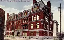 The Detroit College of Medicine was founded in 1868 in a building on Woodward Avenue. The Michigan College of Medicine was incorporated in 1879 and offered classes in the former Hotel Hesse at the intersection of Gratiot Avenue, Madison Avenue and St. Antoine Street. In 1885, the two schools merged to form the Detroit College of Medicine and occupied the former Michigan College of Medicine building. The college was reorganized and refinanced as the Detroit College of Medicine and Surgery in 1913, and five-years later, came under control of the Detroit Board of Education. In 1933, the Board of Education joined the Detroit College of Medicine and Surgery with the colleges of Liberal Arts, Education, Engineering, Pharmacy, and the Graduate School to form an institution of higher education called the Colleges of the City of Detroit. This was renamed Wayne University in 1934 and became a state-chartered institution, Wayne State University, in 1956.[3] The dean is Dr. Mark E. Schweitzer.