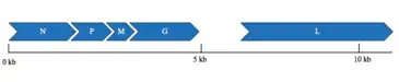 The WCBL contains a linear genome that is 12,278 base pairs in length and comprises five main genes, denoted N, P, M, G, and L. Gene N encodes for the nucleoprotein, P encodes for the phosphoprotein, M encodes for matrix proteins, G encodes for the glycoprotein, and L encodes for the polymerase.[8] WCBL must encode for an RNA-dependent RNA polymerase (RdRp) in its genome in order for viral replication and synthesis to occur because it is a negative single-strand RNA virus. In comparison to other lyssaviruses, WCBL has a shorter trailer region of 57 nucleotides (as opposed to 69-70), but a longer non-coding region specifically in the glycoprotein gene at 697 nucleotides.[9] These differences have resulted in its classification into its own phylogroup. The West Caucasian bat lyssavirus also contains an open reading frame within the G gene which led researchers to believe parts of the glycoprotein were transcribed independently. However, a lack of a transcription initiation signal near the internal open reading frame has since confirmed that the glycoprotein is not transcribed in separate segments.[9]