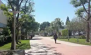 The central portion of campus contains Ethan Allan Park, the Health Professions Center (HPC), the Veterinary Medicine Center, and the Health Sciences Center. Ethan Allen Park is located directly west of the Pet Wellness Center. In 2006, the park was named in honor of Dr. Ethan Allen, founding chairman of the school's Board of Trustees.[68] The other park on campus is Centennial Park, a Pomona city park on the west end of campus. Directly south of Ethan Allan Park, the Health Professions Center houses the College of Pharmacy and contains several classrooms, research facilities, and a student commons area. The building was built in 1962 and was previously the Pomona Buffum's department store.[69] The university acquired the building in 1992, after first receiving the option to buy. The Center for Oral Health, a non-profit organization promoting oral health, is based in the Health Professions Center. The Health Sciences Center, directly west of the Health Professions Center, is a two-story, 72,000-square-foot building with the main anatomy laboratories, a laboratory for osteopathic manipulative medicine, and extensive classroom space. The physical therapy school is based in this building, as is the tutoring program. The Health Sciences Center was formerly a Nash Department Store.[37] The university began using the building in 1990, and then purchased it in 1993.[70]