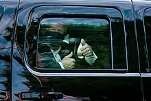 Later in the day, Trump briefly departed the hospital to ride past a gathering of supporters at the medical center, waving from the back seat of an SUV, before returning.[182] Medical experts stated that the short outing endangered the Secret Service agents accompanying Trump inside the vehicle due to his infection.[183][184] James Phillips, doctor of emergency medicine at George Washington University and an attending physician at Walter Reed, called the drive-by "insanity" for "political theater" and wrote that Trump had endangered the Secret Service agents in the presidential SUV by potentially exposing them to COVID-19.[185][186]