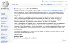 March 2020 message to English Wikipedia's readers about COVID-19, written by Katherine Maher, executive director of the Wikimedia Foundation