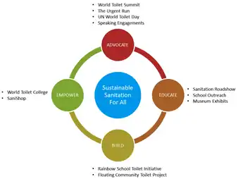 - Advocate to change policy on sanitation: Through its global advocacy efforts, WTO hopes to break the taboo associated with sanitation. Its advocacy events include the annual World Toilet Summit, World Toilet Day and Urgent Run.