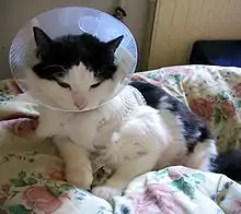 Wound licking is beneficial but too much licking can be harmful. An Elizabethan collar may be used on pet animals to prevent them from biting an injury or excessively licking it, which can cause a lick granuloma. These lesions are often infected by pathogenic bacteria such as Staphylococcus intermedius.[38] Horses that lick wounds may become infected by a stomach parasite, Habronema, a type of nematode worm. The rabies virus may be transmitted between animals, such as the kudu antelopes by wound licking of wounds with residual infectious saliva.[39]