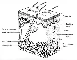 Wrinkly skin syndrome (WSS) is a rare genetic condition characterized by sagging, wrinkled skin, low skin elasticity, and delayed fontanel (soft spot) closure along with a range of other symptoms.[1] The disorder exhibits an autosomal recessive inheritance pattern with mutations in the ATP6V0A2 gene, leading to abnormal glycosylation events.[2] There are only about 30 known cases of WSS as of 2010.[3] Given its rarity and symptom overlap to other dermatological conditions, reaching an accurate diagnosis is difficult and requires specialized dermatological testing.[1] Limited treatment options are available but long-term prognosis is variable from patient-to-patient, on the basis of individual case studies.[1] Some skin symptoms recede with increasing age while progressive neurological advancement of the disorder causes seizures and mental deterioration later in life for some patients.[1]