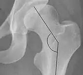 The angle formed between the femoral neck and femoral diaphysis | 120° to 140°