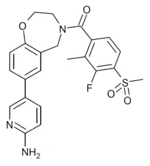 - Takeuchi CS, Kim BG, Blazey CM, Ma S, Johnson HW, Anand NK, et al. (March 2013). "Discovery of a novel class of highly potent, selective, ATP-competitive, and orally bioavailable inhibitors of the mammalian target of rapamycin (mTOR)". Journal of Medicinal Chemistry. 56 (6): 2218–34. doi:10.1021/jm3007933. PMID 23394126.