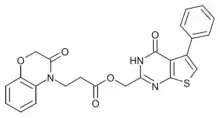 ZINC17988990 is a drug which acts as a potent and selective inhibitor for the TRPV5 calcium channel, with an IC50 of 177nM and high selectivity for TRPV5 over TRPV6 and the other subtypes of TRPV. It is the first selective inhibitor to be developed for TRPV5, and may be useful for modulating calcium reabsorption in the kidneys.[1]