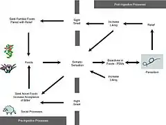 A study on domestic sheep (Ovis aries) has provided clear experimental proof of self-medication via individual learning.[6] Lambs in a treatment group were allowed to consume foods and toxins (grain, tannins, oxalic acid) that lead to malaise (negative internal states) and then allowed to eat a substance known to alleviate each malaise (sodium bentonite, polyethylene glycol and dicalcium phosphate, respectively). Control lambs ate the same foods and medicines, but this was disassociated temporally so they did not recuperate from the illness. After the conditioning, lambs were fed grain or food with tannins or oxalates and then allowed to choose the three medicines. The treatment animals preferred to eat the specific compound known to rectify the state of malaise induced by the food previously ingested. However, control animals did not change their pattern of use of the medicines, irrespective of the food consumed before the choice.[27] Other ruminants learn to self-medicate against gastrointestinal parasites by increasing consumption of plant secondary compounds with antiparasitic actions.[17]