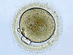 A zygote (from Greek ζυγωτός zygōtos "joined" or "yoked", from ζυγοῦν zygoun "to join" or "to yoke")[1] is a eukaryotic cell formed by a fertilization event between two gametes. The zygote's genome is a combination of the DNA in each gamete, and contains all of the genetic information necessary to form a new individual. In multicellular organisms, the zygote is the earliest developmental stage. In single-celled organisms, the zygote can divide asexually by mitosis to produce identical offspring.
